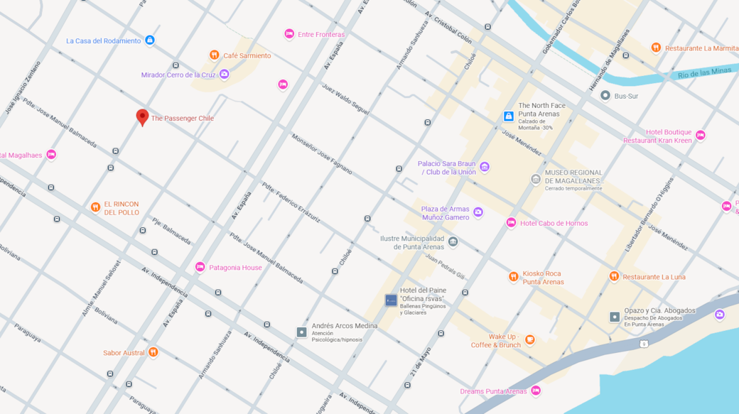 Al llegar a calle Arauco, dobla a la izquierda. The Passenger se encuentra en este sector residencial del Cerro de la Cruz.
